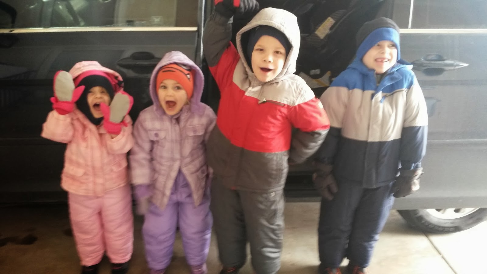 We FINALLY built a snowman. With no grass in our yard, we couldn't just go in the backyard to do it (too much mud), so we had to drive to a park. SHould have been that big of a deal, but it felt like it so I kept putting it off. I had four very excited kids when I finally said "Let's do it!"